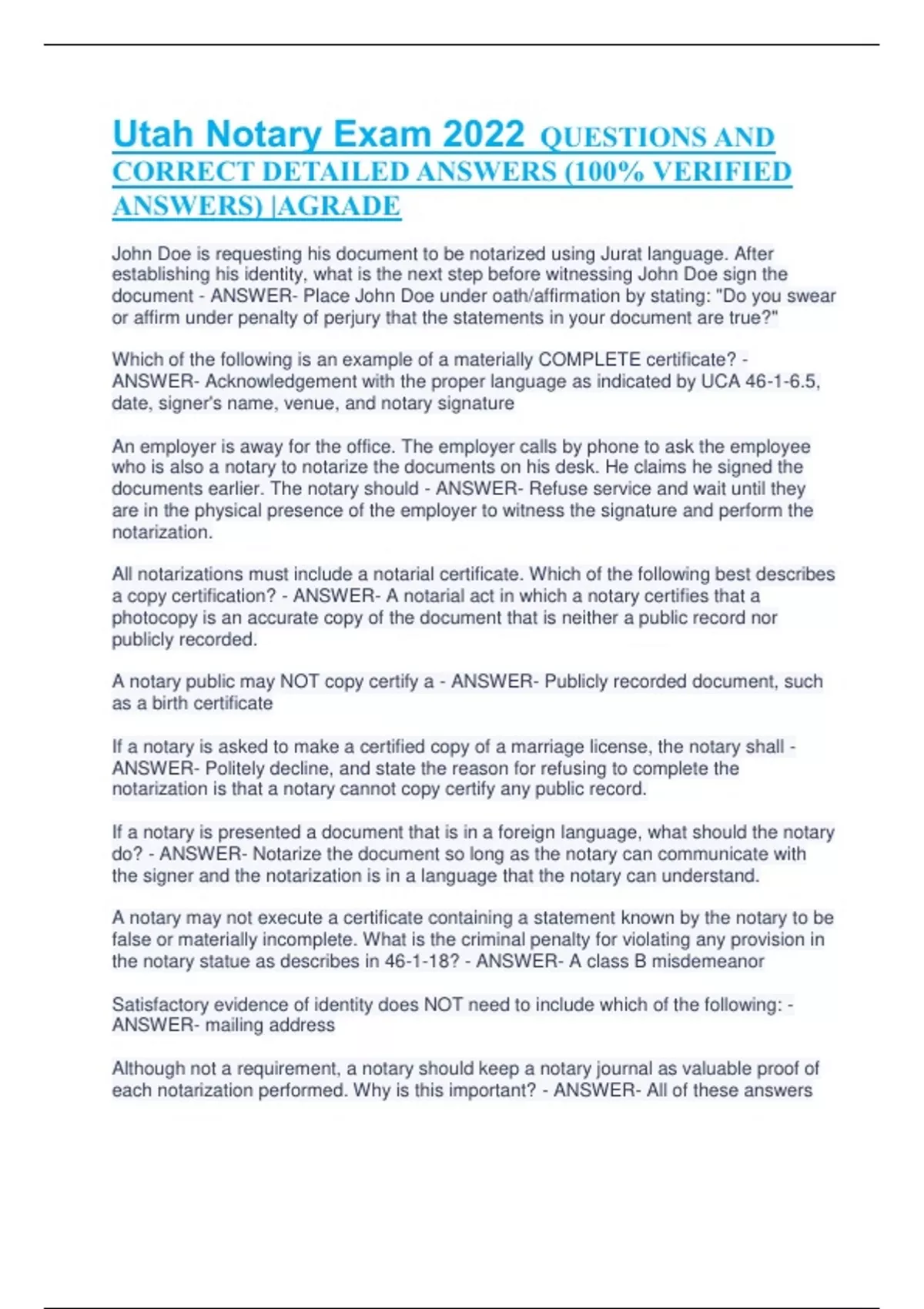 Utah Notary Test QUESTIONS AND CORRECT ANSWERS AND RATIONALES Stuvia US Utah Notary Test Questions state of utah lieutenant governor’s office notary public study guide 2016 ***for use before and during the test*** note: Understand the qualifications and application process for becoming a notary public in utah. quiz yourself with questions and answers for utah notary exam 2022, so you can be ready for test day. prepare for the utah notary exam. Utah Notary Test Questions.